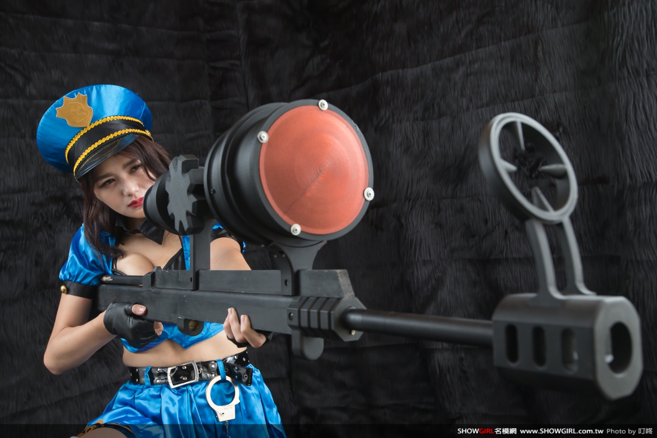 英雄聯盟中皮城女警凱特琳的造型,整套服裝非常華麗,包括:帽子、手銬、手套、領帶、半截上衣、黑色內衣、腰帶、短裙及腿部彈帶所組成。武器為選購品,這次是採用自己繪圖再3D列印輸出的作法。