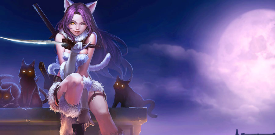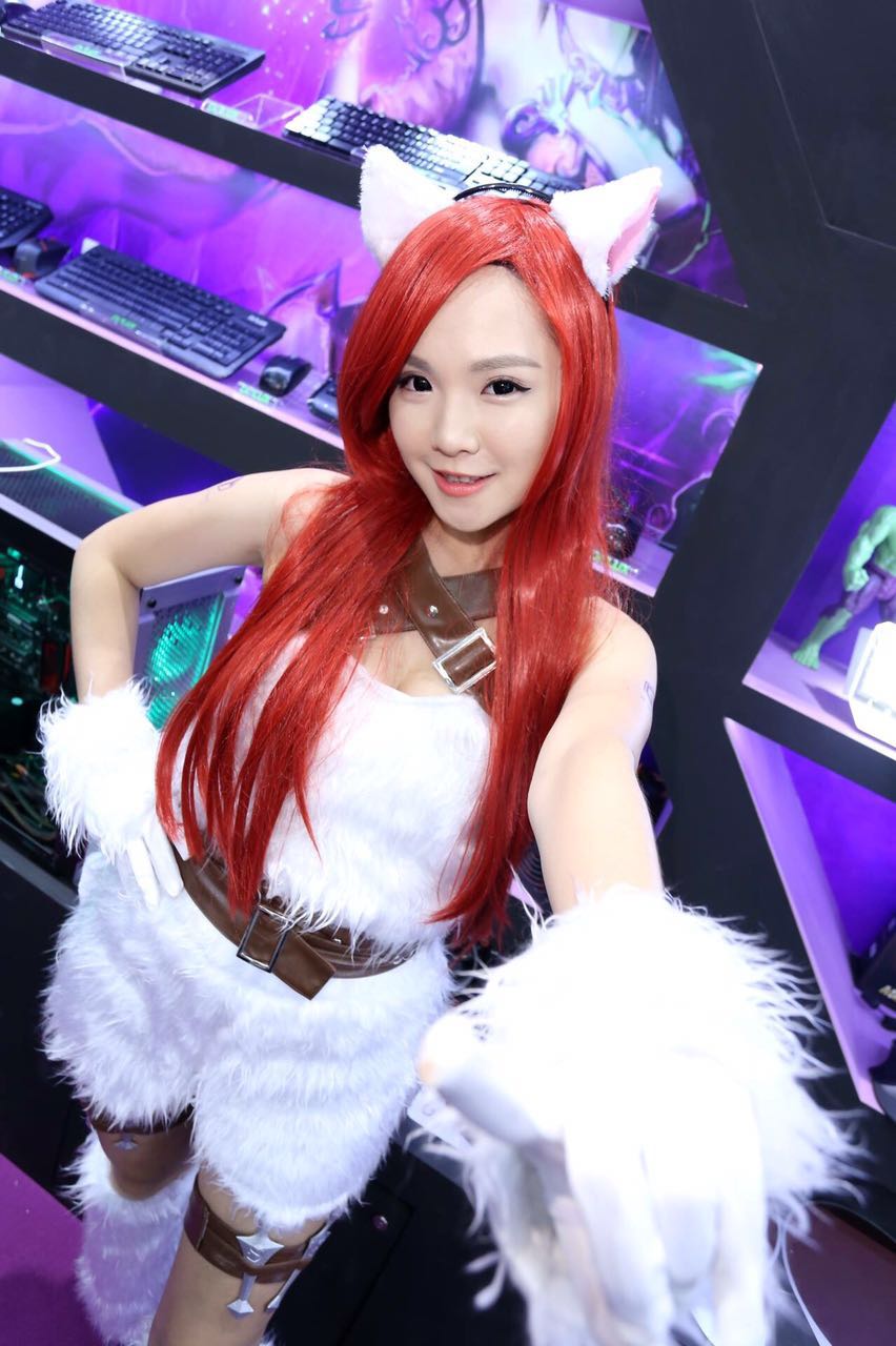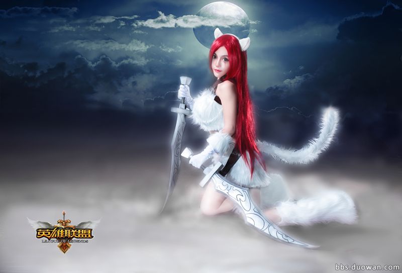 英雄聯盟中卡特蓮娜的雪狐造型,整套服裝非常華麗,包括:耳朵頭飾、假髮、皮件、上衣、手套、袖套、短褲、鞋套所組成。武器為選購品,這次是採用自己繪圖再3D列印輸出的作法。
